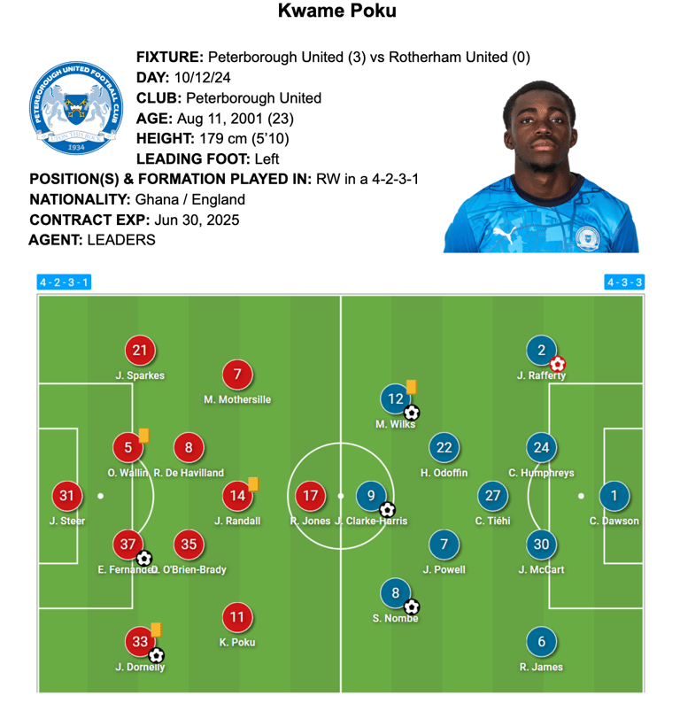 Defensively, while not tested extensively, Poku contributed reliably by pressing intensely in short bursts and maintaining positional discipline. His physical attributes, particularly his speed, stamina, and agility, stood out as key assets that complemented his technical ability. These qualities make him well-suited for attacking systems that require dynamic transitions and adaptability.